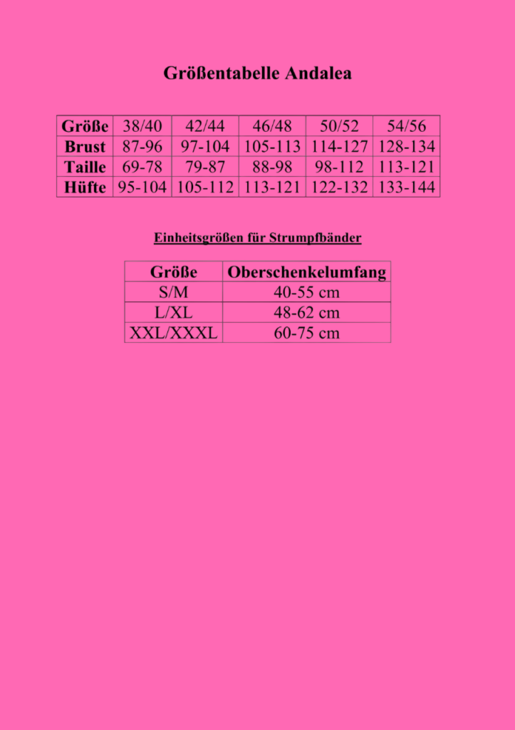 Größentabelle Andalea