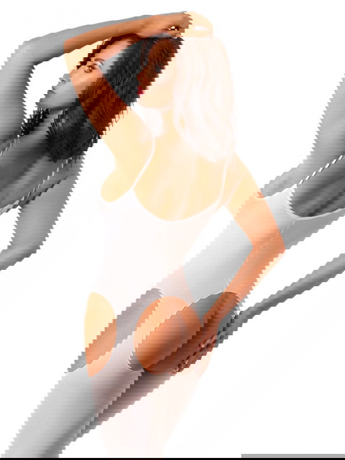 Rimba – Sexy transparente Catsuit mit offene Schritt. Auch in Schwarz verfügbar # 1014.