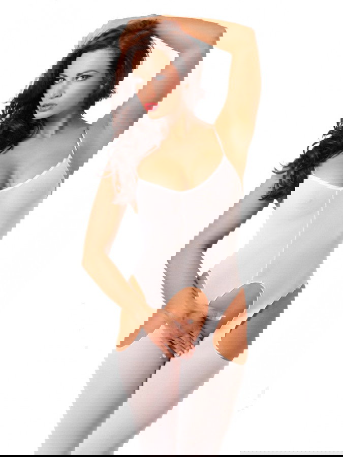 Amorable by Rimba – Catsuit mit offenem Schritt – One Size – Weiß