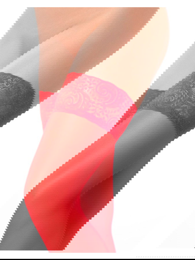 Diese Strümpfe sind oben mit Spitze verziert und bleiben dank des Silikons auf der Innenseite an Ort und Stelle.