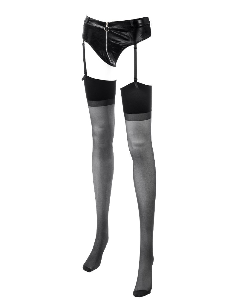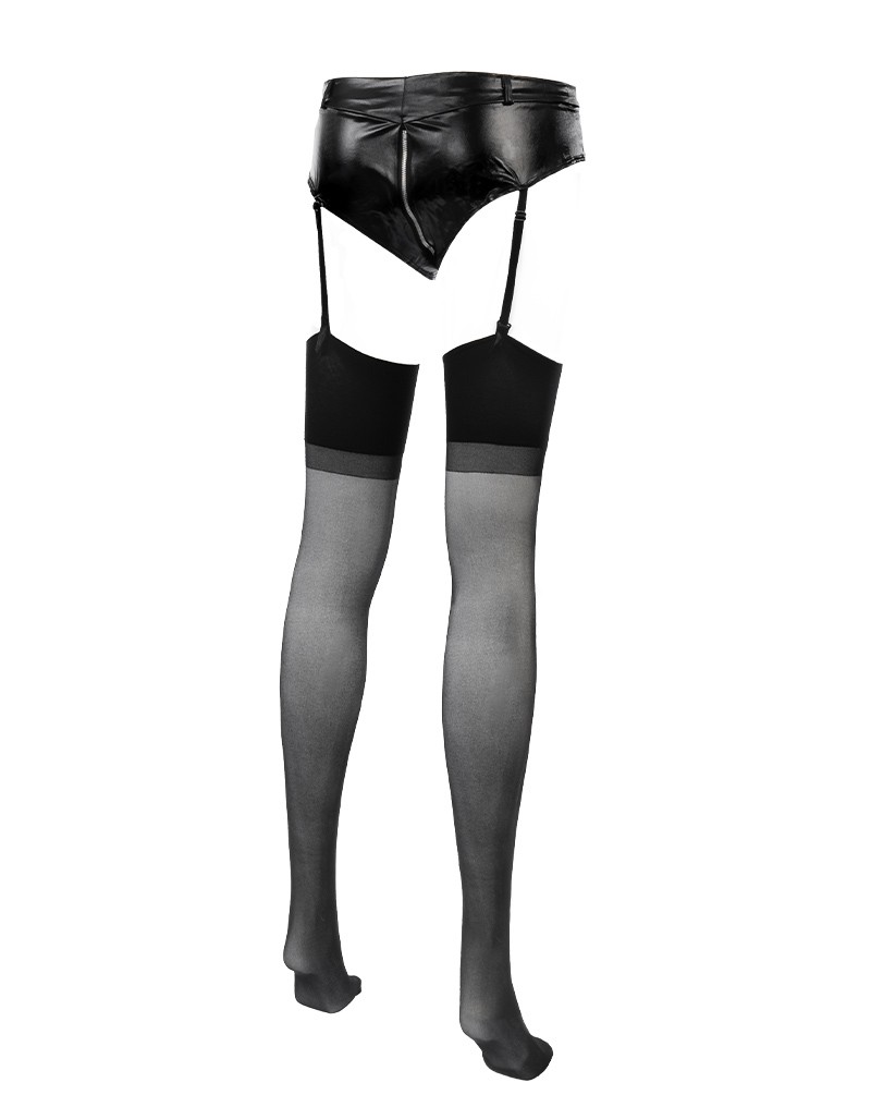 Diese Hotpants im Wetlook haben einen Reißverschluss im Schritt.