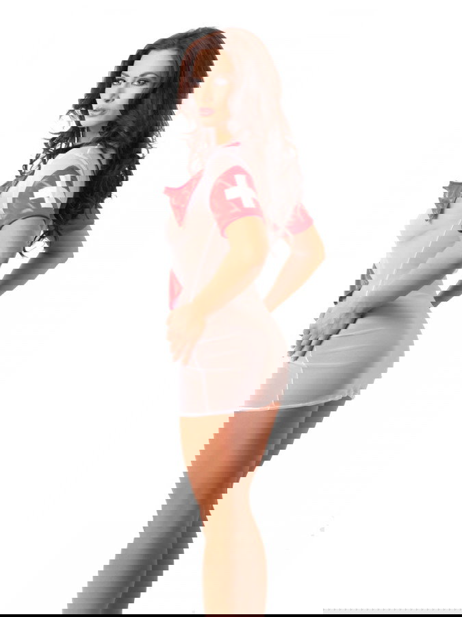 Dieses Krankenschwesterkleid ist aus elastischem Material gefertigt und hat eine Tasche auf der Vorderseite.