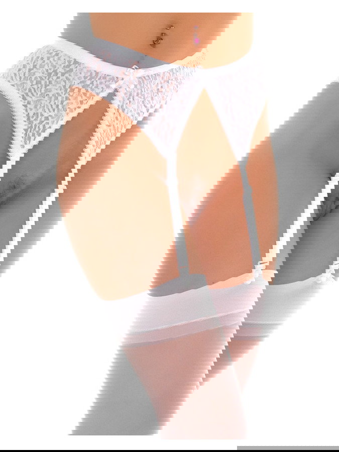 Dieser Strumpfgürtel ist aus Spitze mit Blumenmuster gefertigt und verfügt über 4 verstellbare Träger mit Strumpfhaltern zum Befestigen der Strümpfe.