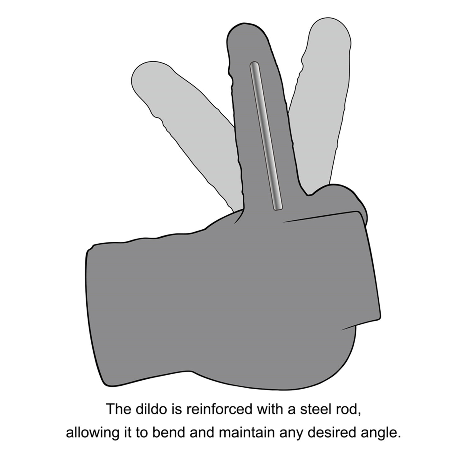 Der bewegliche Dildo ist mit einer Stahlstange verstärkt, die seine strukturelle Integrität verbessert und es ermöglicht, ihn in jedem gewünschten Winkel zu biegen und zu halten.