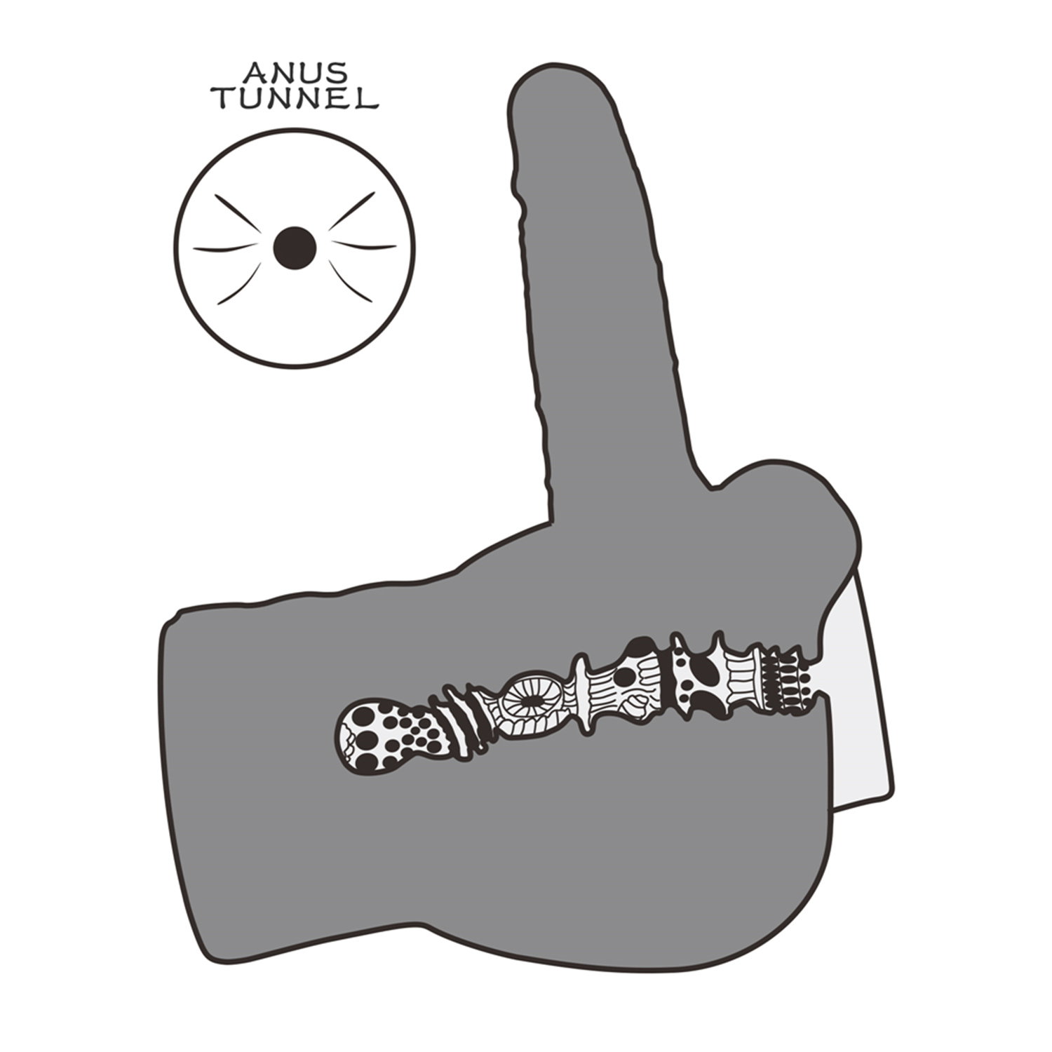 Sein Sextunnel ist mit zahlreichen Noppen und Kurven versehen.