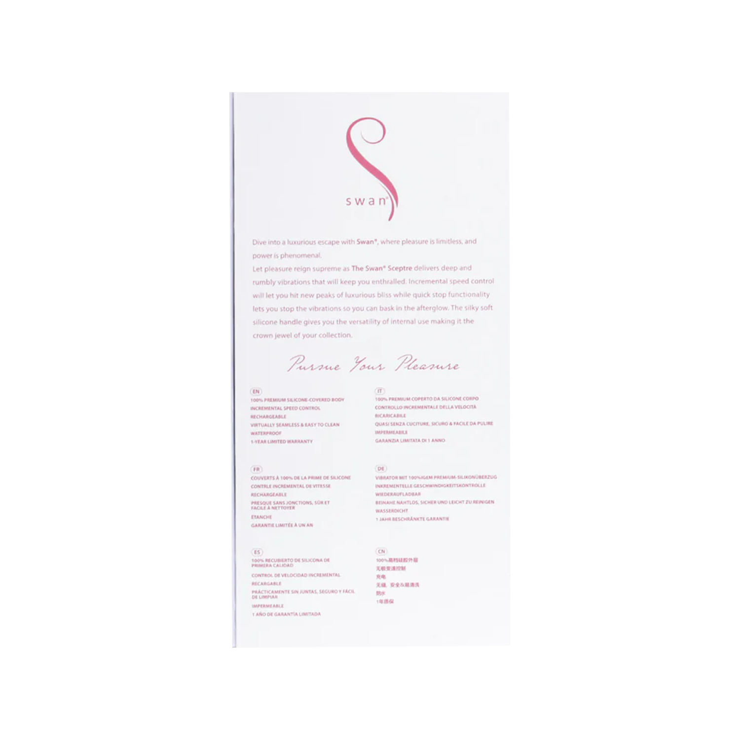 Mit dem Swan Sceptre® erleben Sie vielseitige, präzise und lang anhaltende Stimulation – ein hervorragendes Werkzeug für jedes Verlangen, von Entspannung bis zu intensiven Empfindungen.
